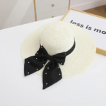 Women's Simple Classic Style Color Block Wide Eaves Straw Hat-White|M(56-58cm)